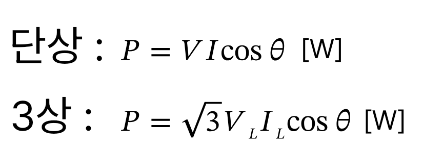 [전기기사]단상전력과 3상전력을 구하는 식은? S 관리반장 복습 0 219 02.25 15:09 VL : 선전압 , IL : 선전류 , cosθ : 역률** 단상 **피상전력 : S = VI [VA}유효전력 : P = VI cosθ [W]무효전력 : Q = VI sinθ [var](3상 일때는 루트3 을 곱함) 전기기사 Author 2 1 Lv.9 S 관리반장 운영자 17,960 (45.8%) 등록된 서명이 없습니다.